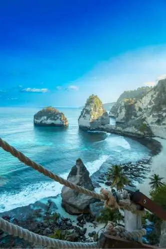 The east side of Nusa Penida offers breathtaking coastal views and hidden gems that showcase Bali’s untouched charm. Visit the incredible Diamond Beach and Atuh Beach, both surrounded by towering cliffs and turquoise waters. Capture postcard-worthy moments at Thousand Islands Viewpoint and the unique Molenteng Tree House, before ending your journey at the scenic Teletubbies Hill.